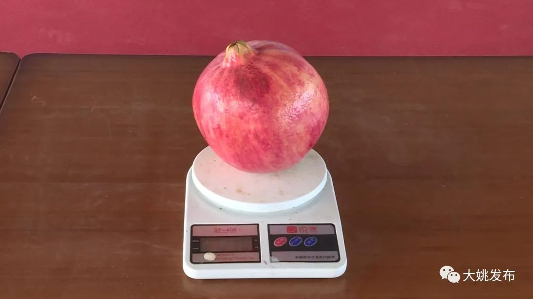 石榴王得主余梅说:“这个是我们今天早上拿来参赛的石榴王,有1.28公斤,是今天早上最大的一个石榴,这些都是我们的石榴基地,我们这里有上千亩的突尼斯软籽石榴,采用的都是科学管理,施的都是有机肥料,种出来的石榴甜度比较高,我这个石榴现在甜度已经达到 17.5,欢迎大家来这里订购我们的石榴。”
