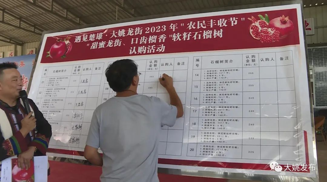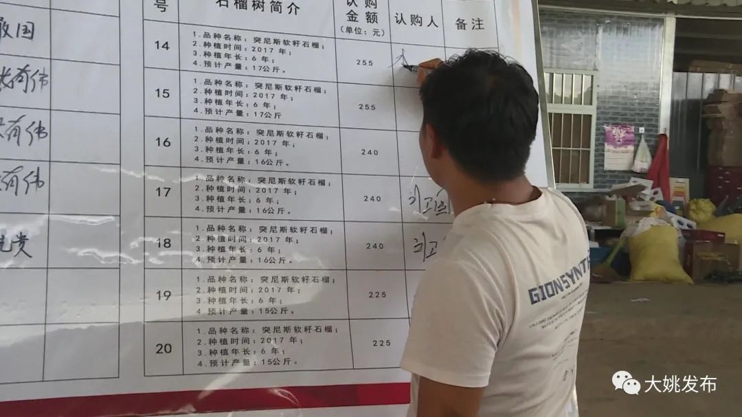 石榴王评选结束后,现场还举行了软籽石榴树认购活动,石榴树认购者们纷纷上前认购了自己中意的石榴树。
