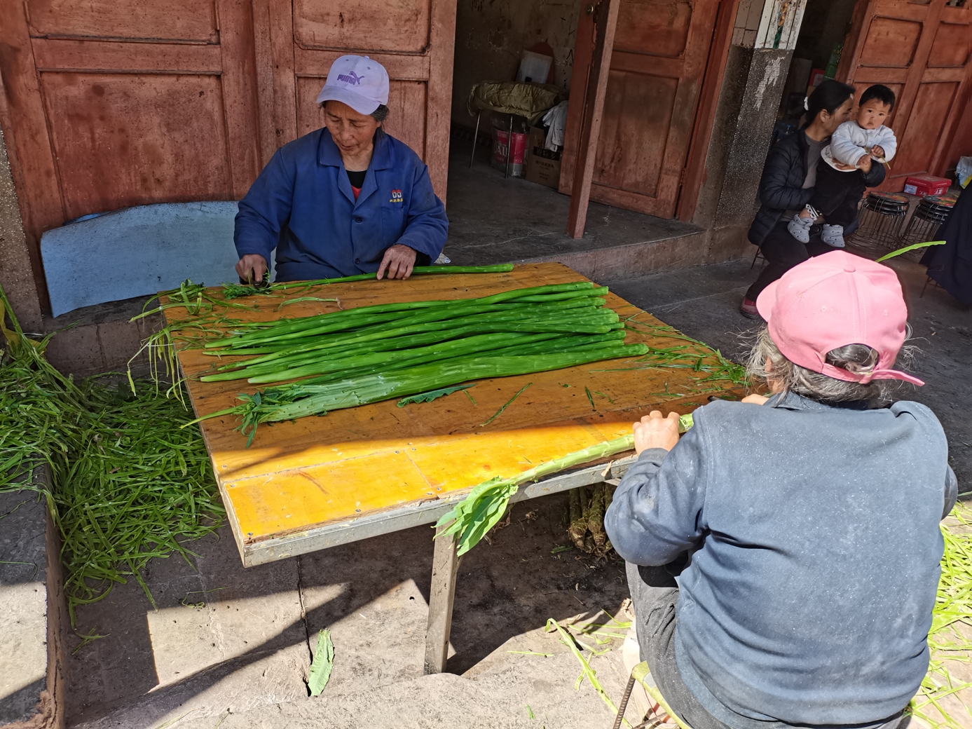 春初,大姚县三岔河镇再一次迎来了贡菜“好丰景”,一块块长满贡菜的田地里,种植户们正抢抓时机,割菜、修叶、削皮、划条、晾挂.....家家户户一片繁忙的景象。