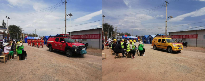 培训邀请县红十字会、县消防救援大队、县地震局专业人员,围绕腰椎、颈椎受伤人员救护,心肺复苏、伤口包扎、帐篷搭建、破拆、顶撑设备使用、担架制作、绳结等内容开展培训。