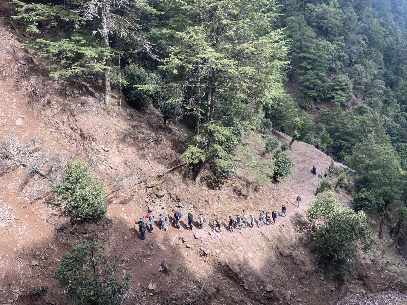 早晨八点,全体人员迎着朝阳集中乘车前往登山起点—全县海拔最高的村民小组碧拉乍村大羊窝子,小组内洁净的青石板道路和错落有致的垛木房让大家切实感受到湾碧乡扎实开展脱贫攻坚成果同乡村振兴有效衔接的工作成效。