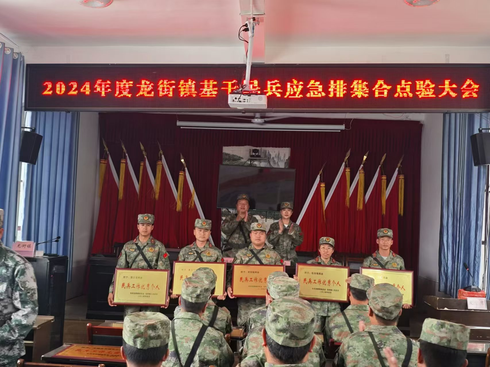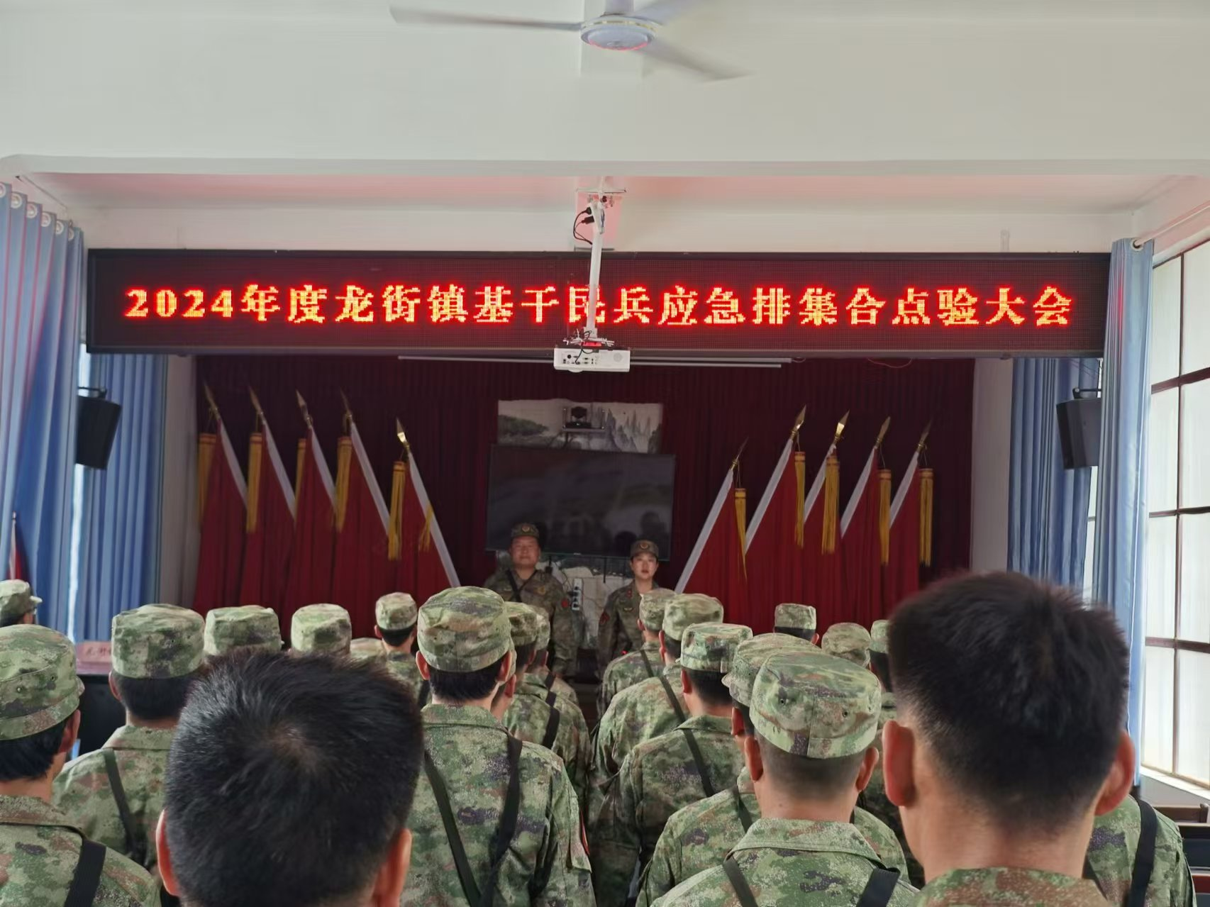 5月22日,龙街镇召开2024年度基干民兵应急排点验大会,龙街镇全体基干民兵应急出席点验大会,县人武部长高长龙一行8人到会检查指导。
