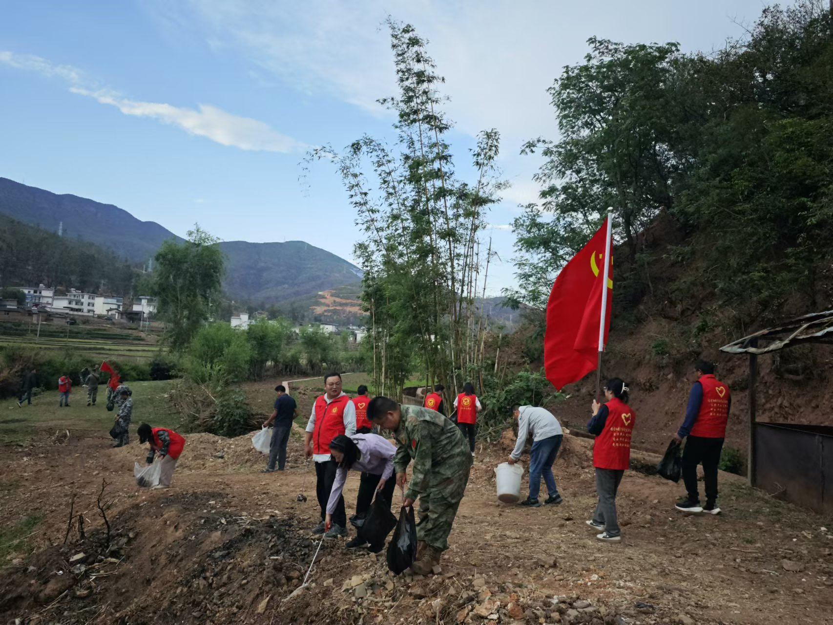 会后,龙街镇民兵应急排“趁热打铁”赴五福美泗村开展了“清河行动齐参与”主题党日活动,进一步提高了民兵政治觉悟,增强了民兵队伍的凝聚力和战斗力,自觉把思政教育学习成果转化为“为民办实事”的干劲和热情,用实际行动践行了龙街镇民兵应急排的职责使命。