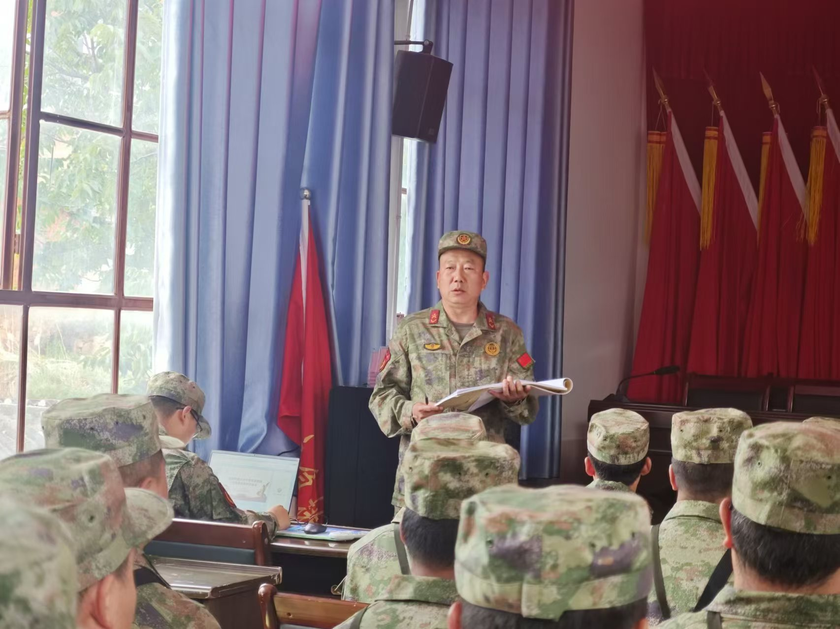政治教育学习中,镇党委书记、武装部政治教导员张钰霖以习近平强军思想为主题,为民兵详细讲解了习近平强军思想的发展脉络、习近平强军思想的科学体系及在习近平强军思想引领下胜利前进的主要内容,丰富的内容振奋人心,引领全体民兵激发强军精神、凝聚强军力量,使得血性铁骨的英雄气不断焕发,活力充沛的创造力竞相迸发。