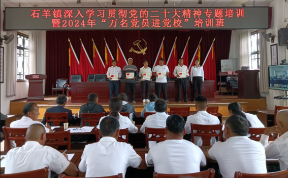 为巩固拓展主题教育成果,不断把学习贯彻习近平新时代中国特色社会主义思想和党的二十大精神引向深入,切实把全镇各级党组织和广大党员干部群众的思想统一到党的二十大精神上来,强化党员思想理论武装,淬炼党员党性修养,引导广大党员不断践行初心使命。7月1日,石羊镇深入学习贯彻党的二十大精神专题培训暨2024年“万名党员进党校”培训班正式开班,全镇1000余名党员参加培训。