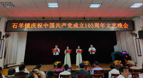 为庆祝中国共产党成立103周年,弘扬伟大建党精神,歌颂党的伟大成就,我镇“同心向党 筑梦未来”主题文艺晚会在镇离退休党支部党员的舞蹈《党旗更鲜艳》中拉开帷幕,从《党旗更鲜艳》《不忘初心》的柔美舞姿,到《红色记忆——诗与歌的礼赞》《错位时空》《医心向党》《请党放心,强国有我》《中国 中国 鲜红的太阳永不落》的深情讴歌以及《走进新时代》《打靶归来》《我们走在大路上》《歌唱祖国》《我的中国心》《映山红》慷慨激昂的演奏,再到《信仰的力量》振奋人心的情景剧,文艺节目精彩演绎,热闹非凡,深情回顾党的百年奋斗历史,热情讴歌党的光辉历程,引导广大党员群众知党史、感党恩、跟党走。