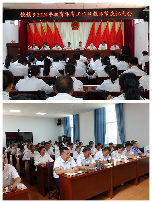 金秋九月,桃李芬芳。为弘扬尊师重教的良好社会风尚,激发广大教师和教育工作者教书育人的热情,进一步推动全乡教育高质量发展。9月13日,铁锁乡召开2024年教育体育工作暨教师节庆祝大会。乡党政班子成员、各办公室(中心、队)负责人、各村(社区)党总支书记、村委会主任、部分教师代表及爱心企业代表共60余人参加会议。