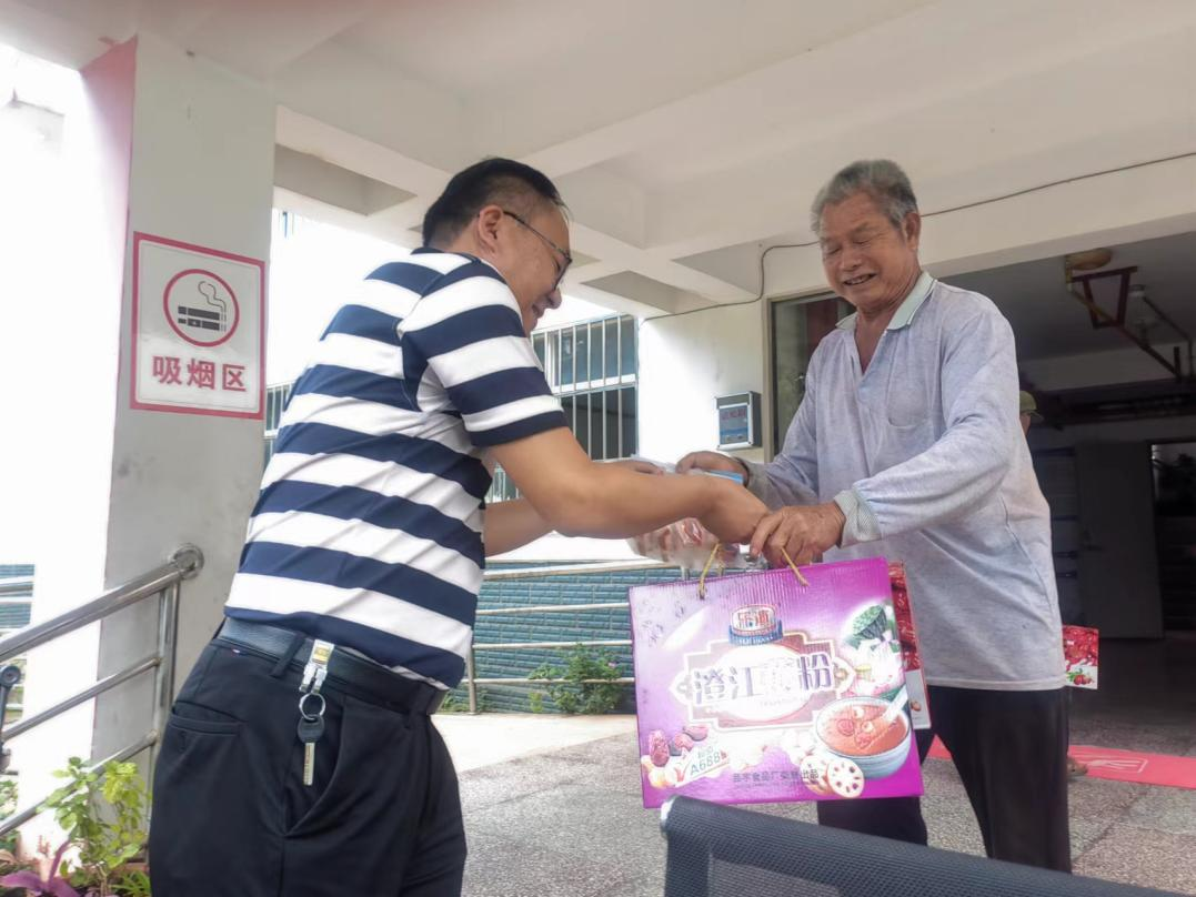 (乡党委副书记、乡长陈启华同志为老人送上慰问礼品)