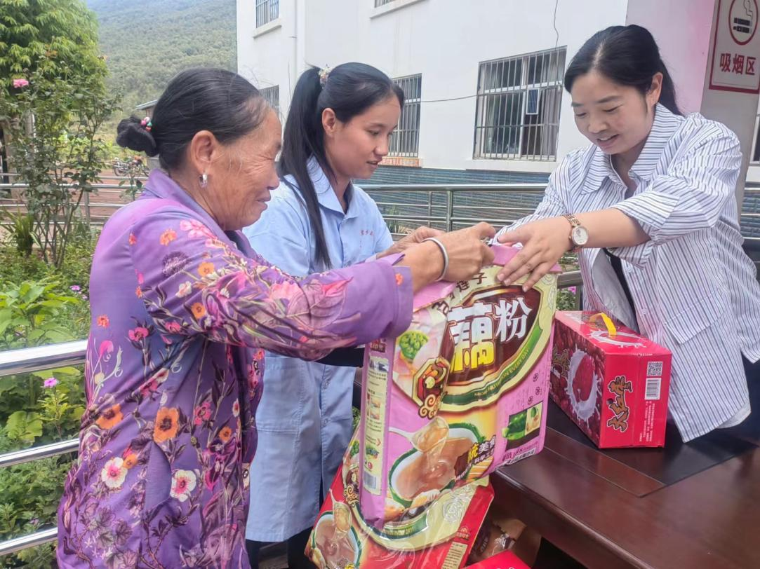 本次活动中,参与慰问的湾碧乡领导一边参观院内环境,一边与老人们亲切交谈,询问他们的身体状况、生活起居,倾听他们的心声与需求,并叮嘱他们要保重身体,随后向21位老人送上了牛奶、水果、食用油、大米等慰问礼品。