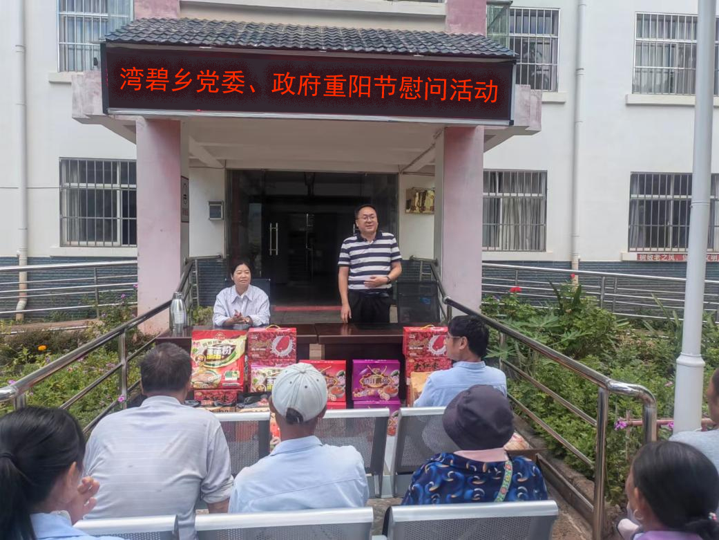 重阳佳节来临之际,为弘扬中华民族“尊老、敬老、爱老”的优良传统,让敬老院的老人们度过一个温暖、祥和的重阳节。10月11日上午,湾碧乡党委政府主要领导和分管领导到湾碧乡敬老院开展重阳节慰问活动。