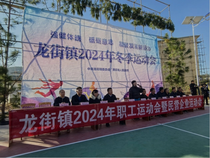 “起来,不愿做奴隶的人们……”在庄严而肃穆的国歌声中,龙街镇2024年冬季职工运动会暨民营运动会于2025年1月1日上午开幕,参加本次运动会的有镇全体干部职工、8个村(社区)“大岗位制”人员、驻村工作队、驻龙街镇辖区内各企业单位,合计200余人。