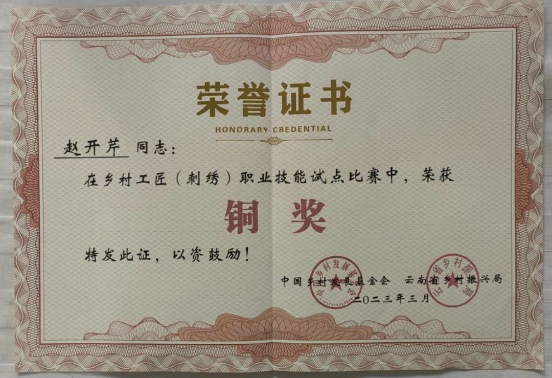 在楚雄州大姚县龙街镇塔底村,有着一位熠熠生辉的女性典范——赵开芹,身为楚雄州非物质文化遗产项目代表性传承人,她用坚韧不拔的精神和对刺绣的满腔热爱,打破命运的重重枷锁,凭借顽强的毅力和对刺绣艺术的无限热爱,在刺绣这片五彩斑斓的天地中,以针为笔,以线为墨,披荆斩棘书写着属于自己的传奇篇章,为广大女性树立了榜样,彰显了女性在传承非遗文化、追逐梦想道路上的无限力量。