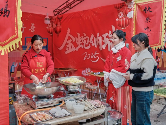 在“趣”大姚·过大年·迎头彩2025年大姚石羊古镇“蛇年孔韵好彩头”春节系列活动期间,古镇状元小吃街成为游客们吃喝购物的天堂,色香味俱全的食物和生态的农特产品让游客流连忘返。