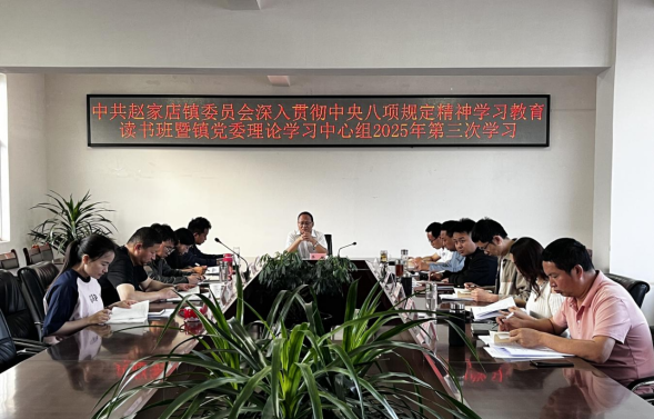 4月10日至11日,赵家店镇举行深入贯彻中央八项规定精神学习教育读书班暨镇党委理论学习中心组2025年第三次学习。全体参学人员集中学习了《习近平关于加强党的作风建设论述摘编》《习近平关于全面从严治党论述摘编》以及《中共中央八项规定》《中央八项规定实施细则》的部分内容。同时,剖析了一系列违反中央八项规定精神的典型案例,帮助大家深刻领会中央八项规定精神的重要性与严肃性,强化廉洁自律意识,切实将思想和行动统一到习近平总书记重要指示精神及党中央决策部署上来。