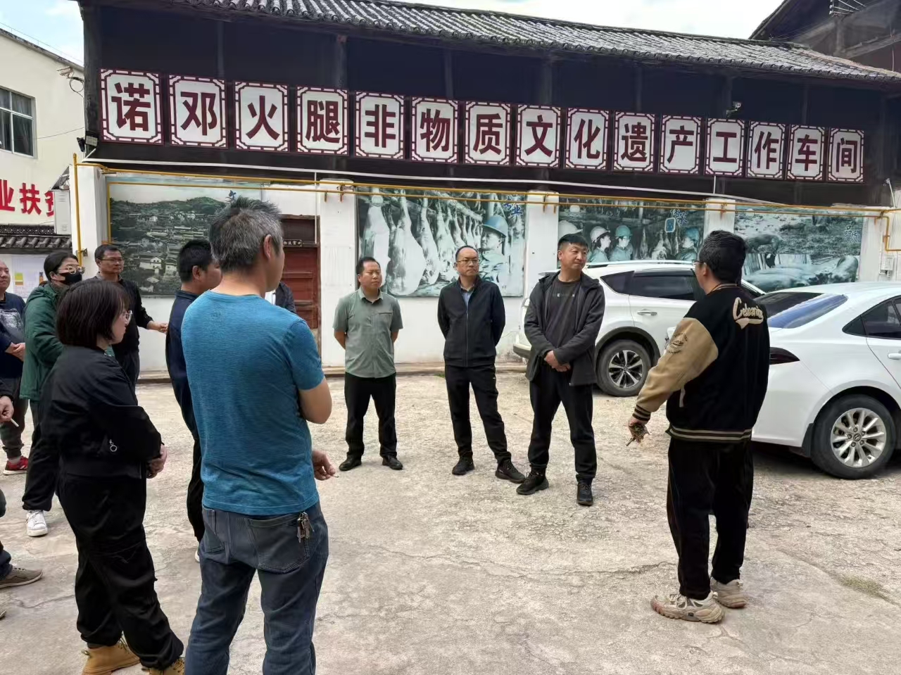 3月22日,由昙华乡党委书记陈勇带队的考察团首站抵达大理州云龙县诺邓镇。在诺邓镇火腿食品厂,考察团深入学习了火腿加工技术,重点调研了原料选购、生产工艺及与农户合作的运营模式,为昙华乡小火腿加工厂的提质增效提供了宝贵经验。随后,考察团前往诺邓古村,实地考察古村落保护与文旅融合发展情况。诺邓古村以“古村落旅游”和“诺邓火腿民俗文化”为核心品牌,通过深挖儒释道文化及乡土文化资源,实现了文化传承与产业发展的有机结合,为昙华乡挖掘本土资源优势、推动乡村旅游升级提供了新思路。