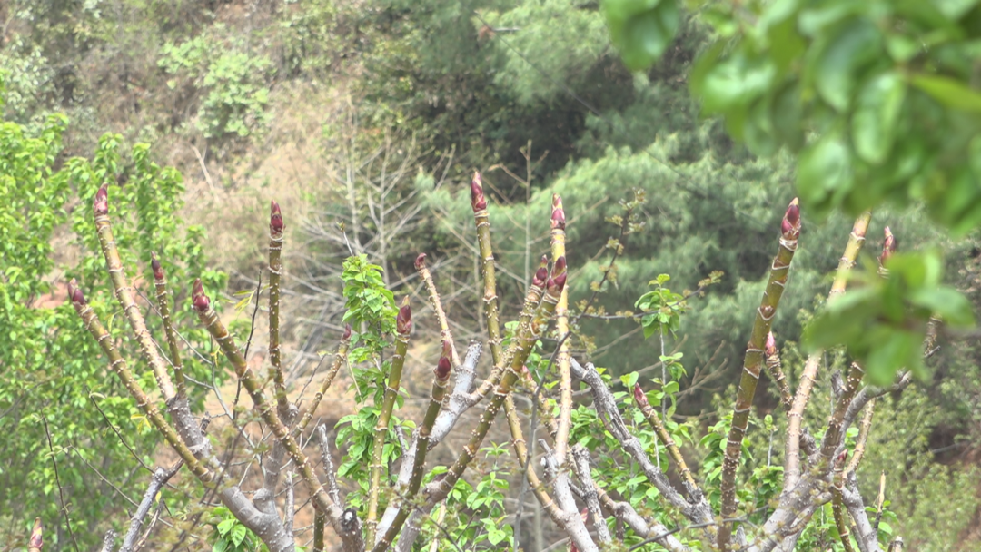 万物复苏,苗木吐绿。在昙华乡麻秸房村,房前屋后、田间地头,一株株刺脑包树长势喜人,枝头挂满鲜嫩欲滴的芽苞,村民们早早地就来到自家的地里,采收已经成熟可上市的刺脑包。