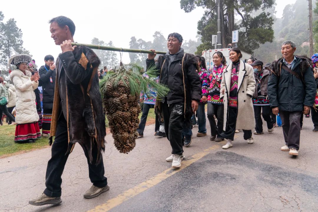 中午13时,巡游队伍从杨森广场出发,沿着蜿蜒的盘山小道向千柏林迈进。各代表队身着当地传统彝族服饰,带上具有特色亮点的非遗手工制品沿途展示,大家吹着唢呐、敲着锣鼓一路向前,热闹非凡。行进途中,各代表队各展风采。有的队伍一边前进一边表演传统的彝族舞蹈,舞者们步伐矫健,动作刚劲有力,展现出彝族人民的豪迈与热情;有的队伍则现场展示彝族传统刺绣,引得沿途围观的群众纷纷驻足拍照。