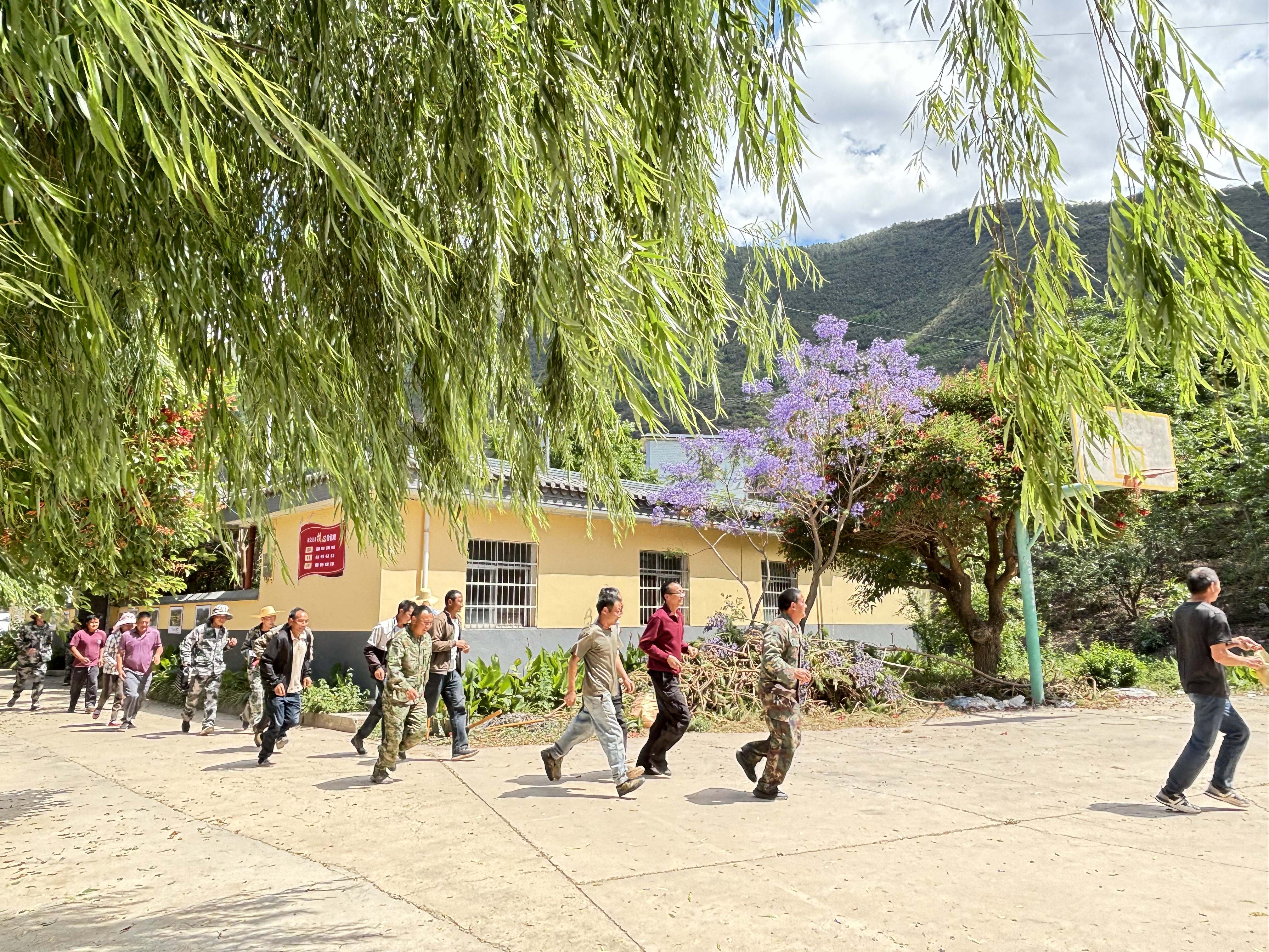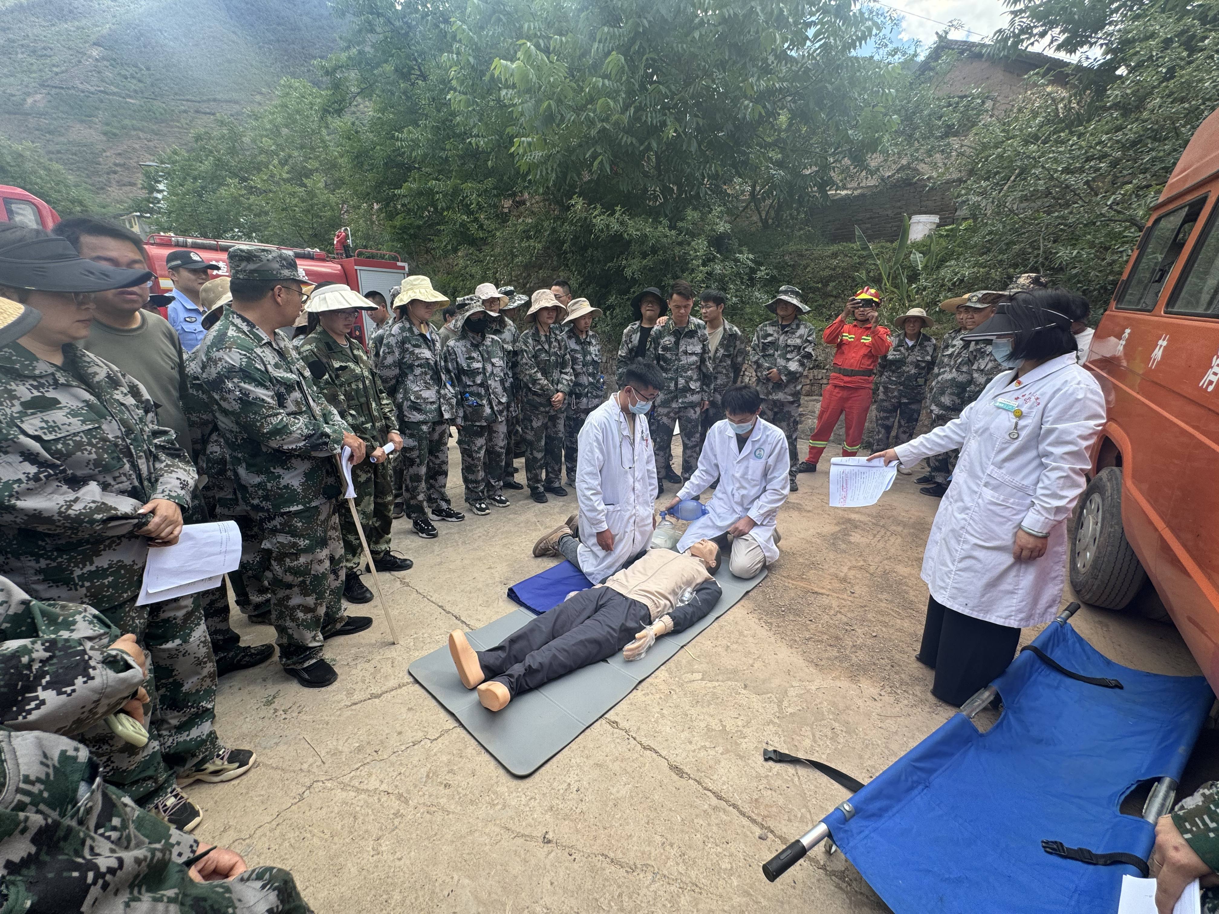 5分钟后队伍集结完毕,乡人民政府召集人员分别成立了抢险救灾组、维护社会治安组、医疗防疫组、灾民安置与物资调运组、灾情信息核查与上报组、基础设施损毁调查与恢复组、新闻信息发布组等,全力保障救援工作顺利进行。各工作组迅速进入角色,模拟了乡人民政府、村(社区)、村民小组应急指挥与应急响应,以及部分地区受到灾情的各项应急救援工作。