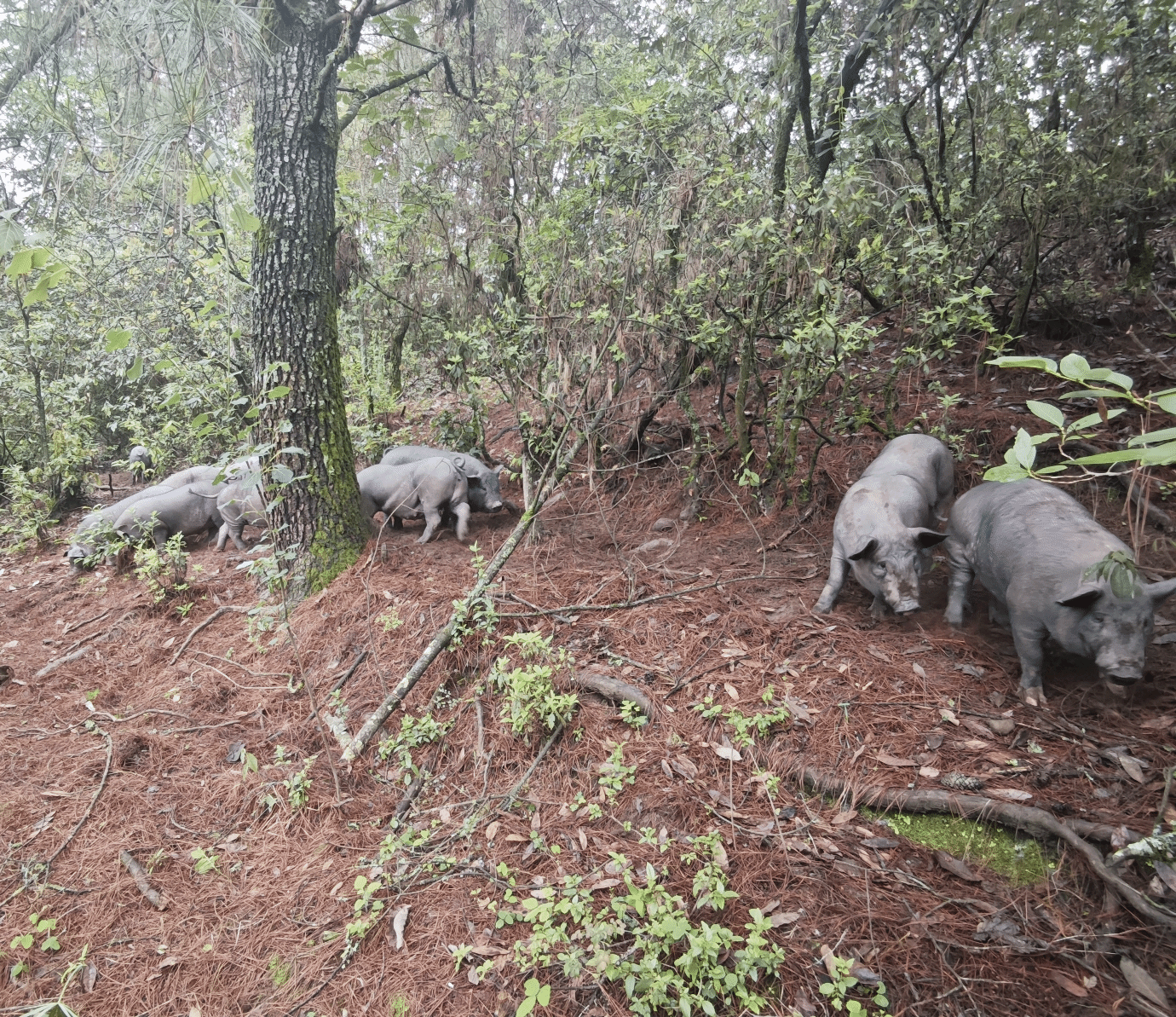图为林下养殖黑山猪