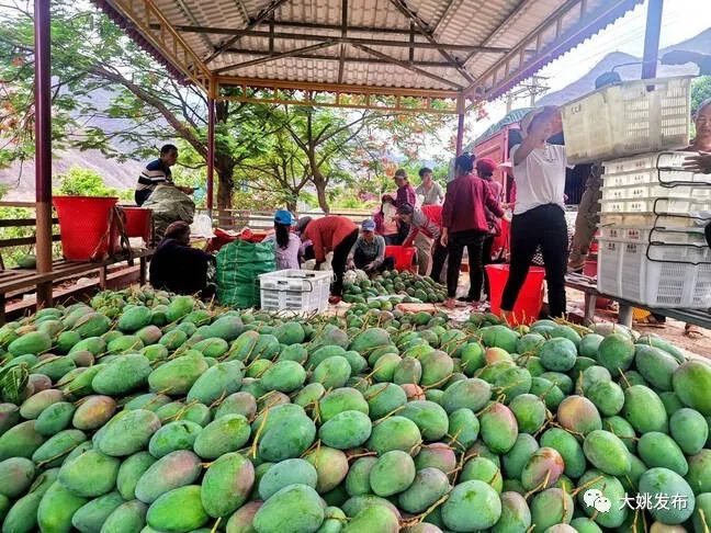 时下,正是芒果丰收的季节,在大姚县湾碧乡沿江片区,漫山遍野的芒果树上挂满了硕大的芒果,果香飘溢,果农们正在忙碌着采摘、搬运、分选、销售,享受丰收的喜悦。