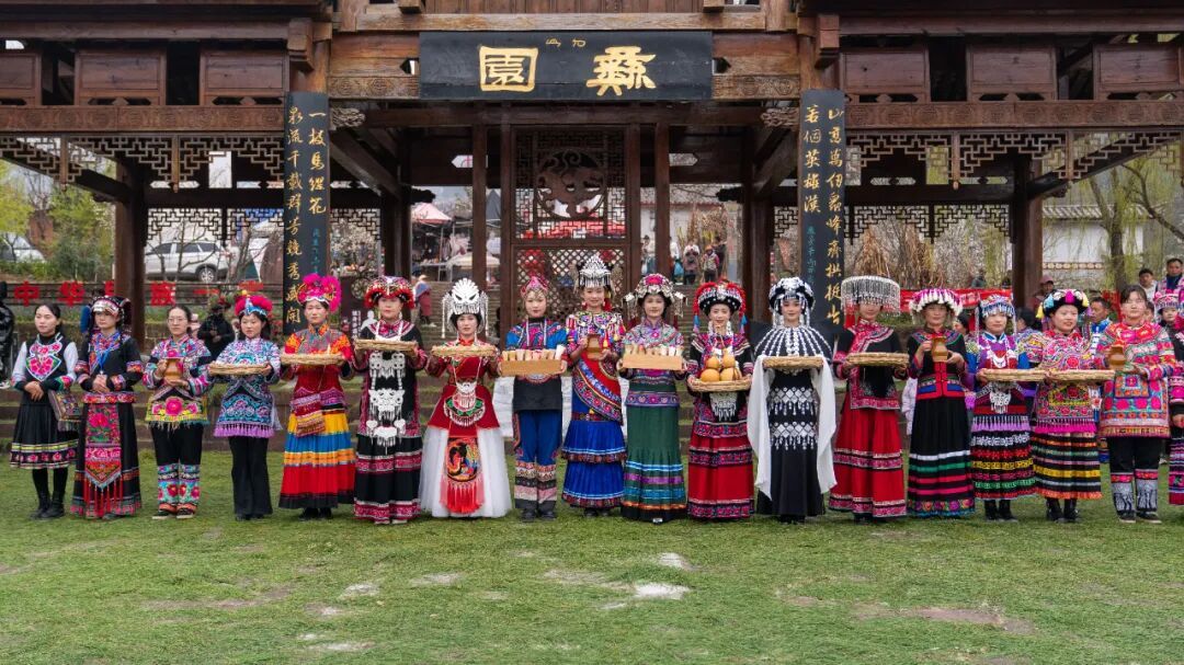 农历二月初八,是彝族一年一度颇具特色的传统节日——插花节。节日当天,非遗传承·2025大姚“昙华彝族插花节”群众文化活动迎宾仪式在昙华乡彝园寨门盛大举行。