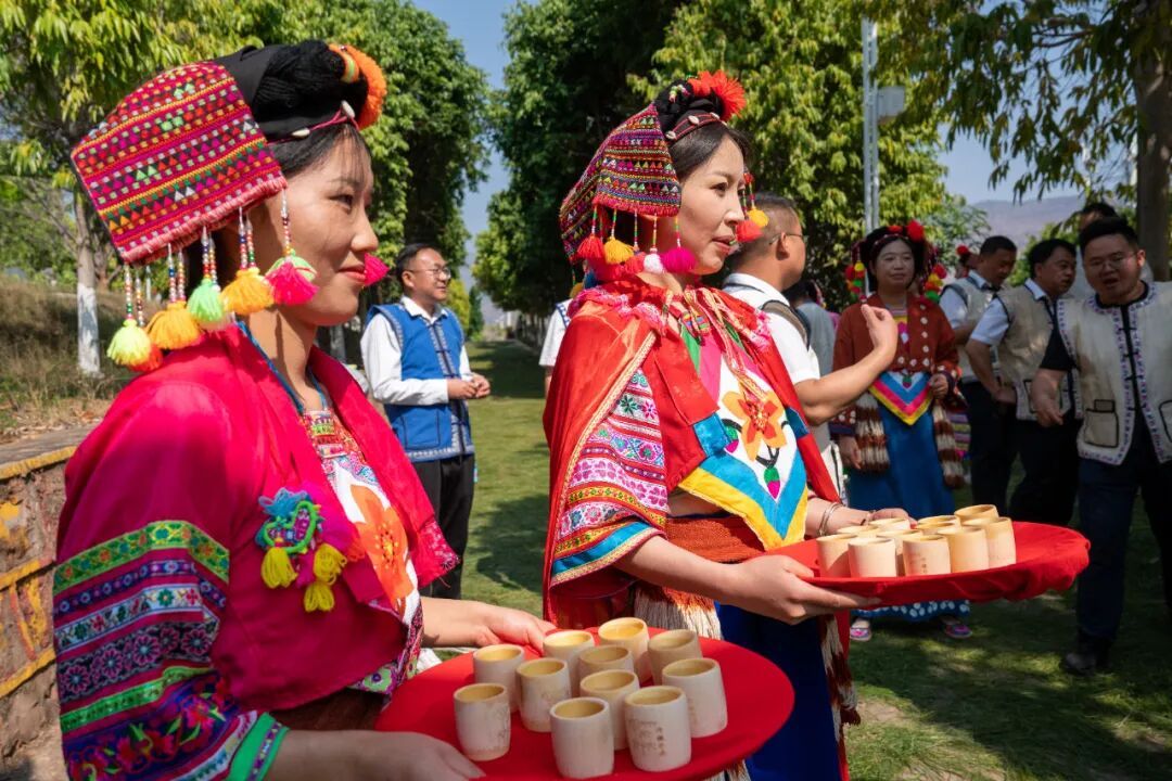 刚进入湾碧,身着傣族传统服饰的青哥红妹就捧着竹筒拦门酒,热情似火喜迎八方宾朋,为节日增添了一抹别样的风情。