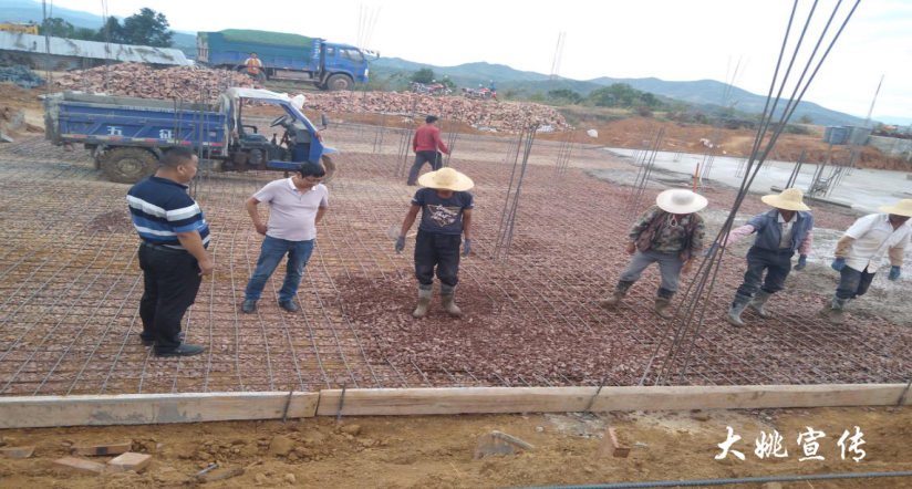 这几天,在赵家店镇黄羊岭村委会拉麦小组、小江头小组,大姚沪滇扶贫协作养殖示范基地建设正在紧锣密鼓地进行着,每天都有八十余人在施工现场忙碌着,工程车、搅拌机等响声不断。