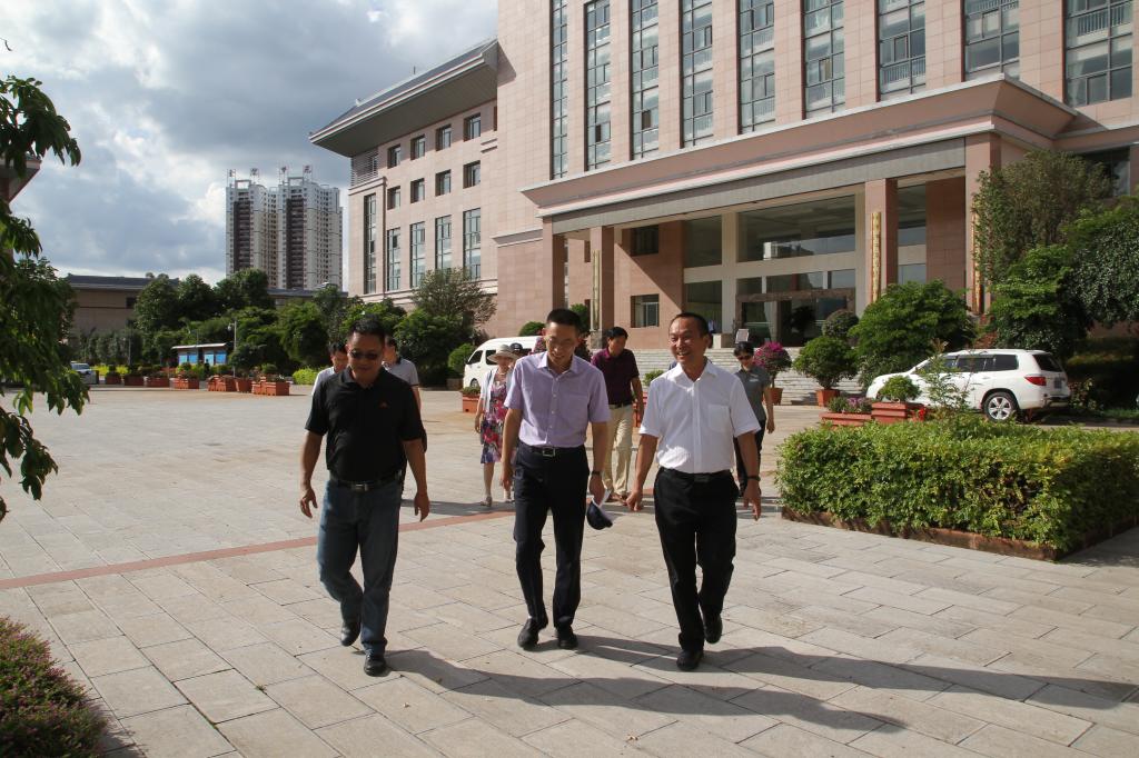 2015年10月13日县委书记陆积峰(左三)到基金会调研指导工作 |