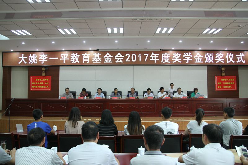 陆积峰(主席台右五)出席基金会2017年度奖学金发放仪式 |