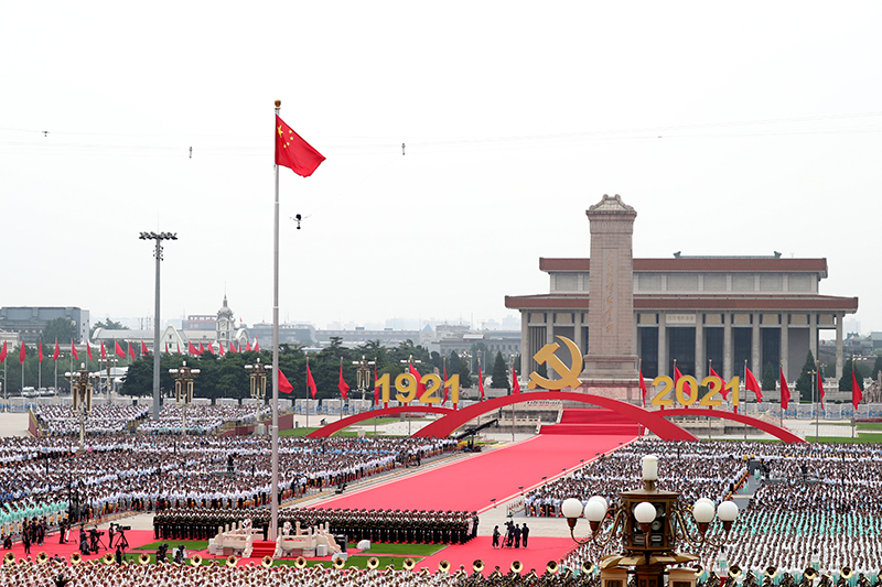 7月1日上午,庆祝中国共产党成立100周年大会在北京天安门广场隆重举行。新华社记者 兰红光 摄