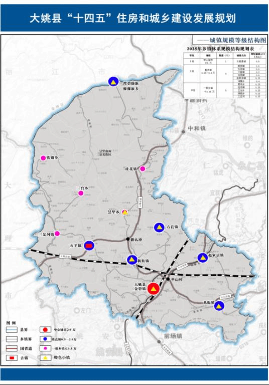 大姚县域城镇职能结构规划一览表