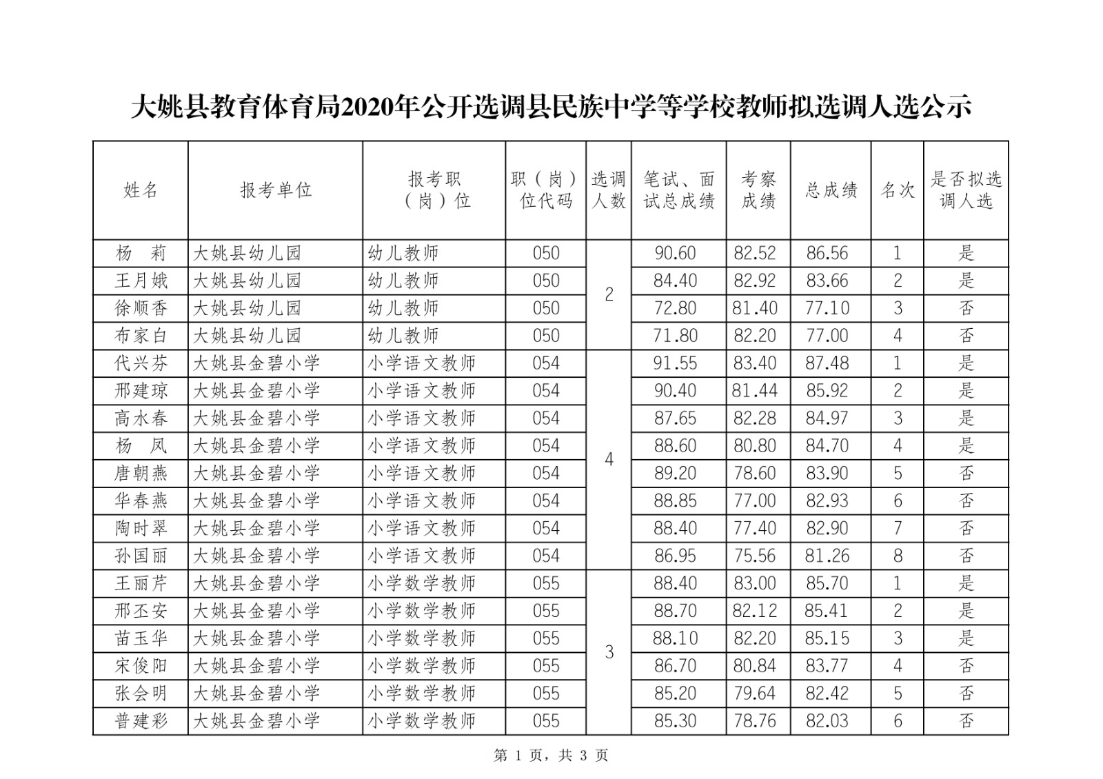 大姚县教育体育局2020年公开选调县民族中学等学校教师拟选调人选公示