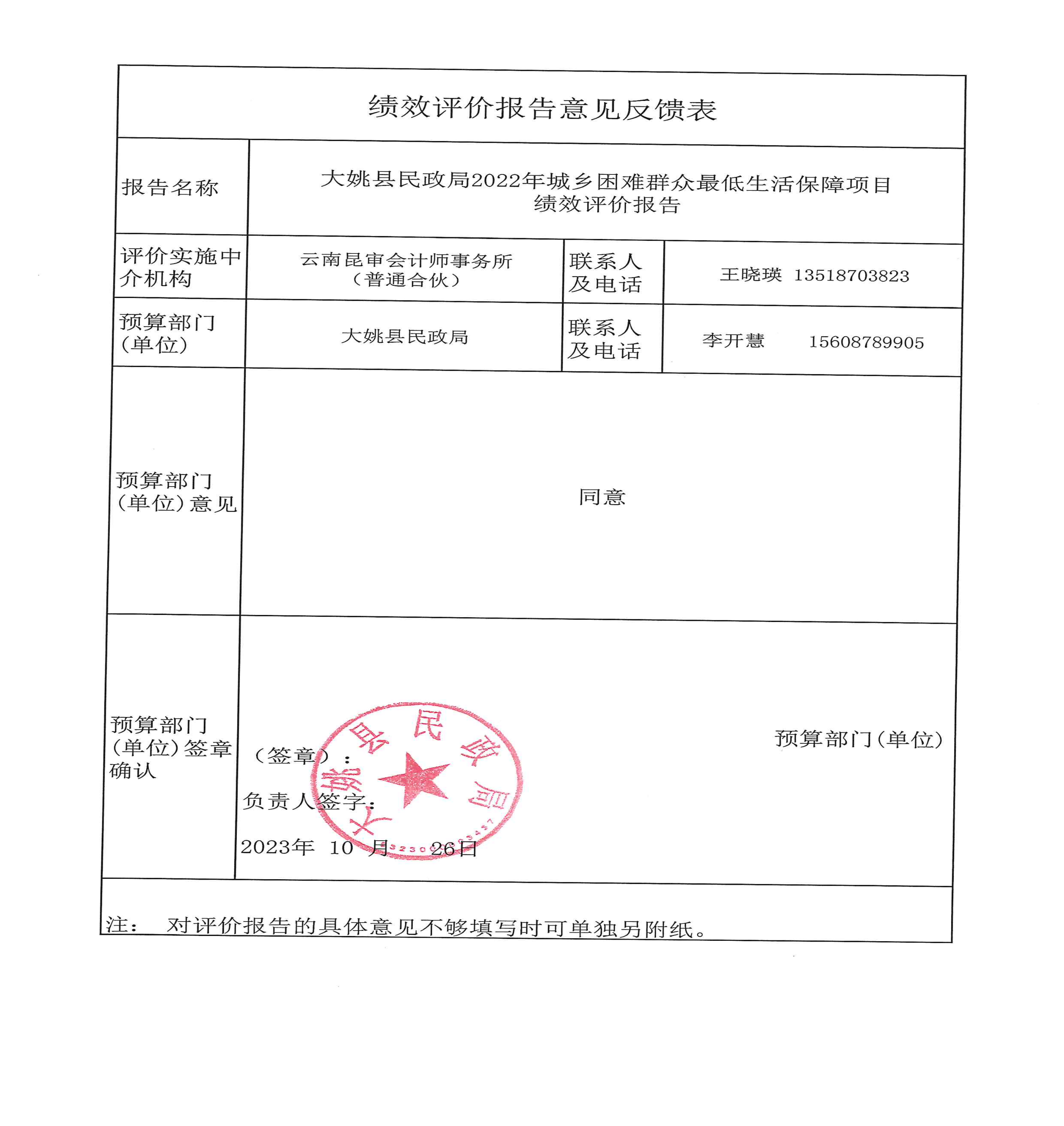 报告名称 | 大姚县民政局2022年城乡困难群众最低生活保障项目绩效评价报告 | ||