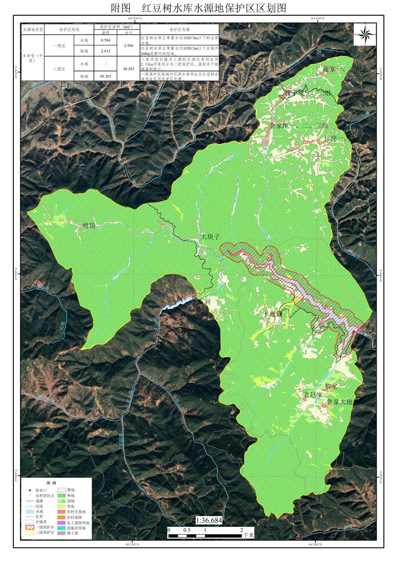 水域:红豆树水库正常蓄水位1920.5m以下的全部水域。 |
