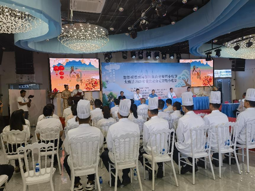 为进一步提高大姚餐饮业的服务质量和水平,挖掘、整理、提升和弘扬大姚饮食文化,打造本地餐饮品牌,提振餐饮消费,实现大姚餐饮行业提质、增效、转型、升级,助力全县经济社会发展,7月28日,大姚县2023年餐饮美食竞赛暨小吃节系列活动在大姚县城市港湾五楼食天乐婚礼宫开幕。