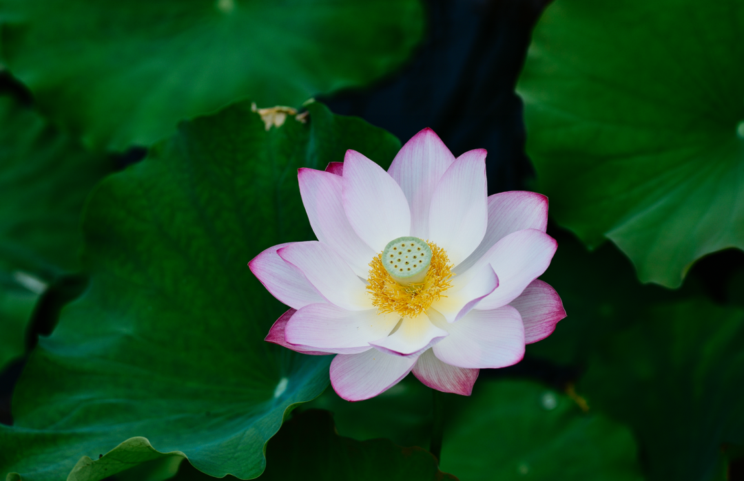 柔美的荷花在雨水的沐浴下,满池子湿漉漉的绿色,珍珠般的雨滴落在荷叶上,荷叶兜着雨水,枝干压弯了腰,荷花显得更加清鲜明媚,色泽饱满,袅娜多姿,如诗如画,如梦如幻,惊艳了时光……