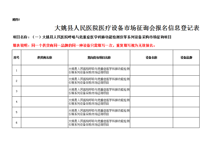 (一)大姚县人民医院呼吸与危重症医学科肺功能检测仪等系列设备采购市场征询项目;