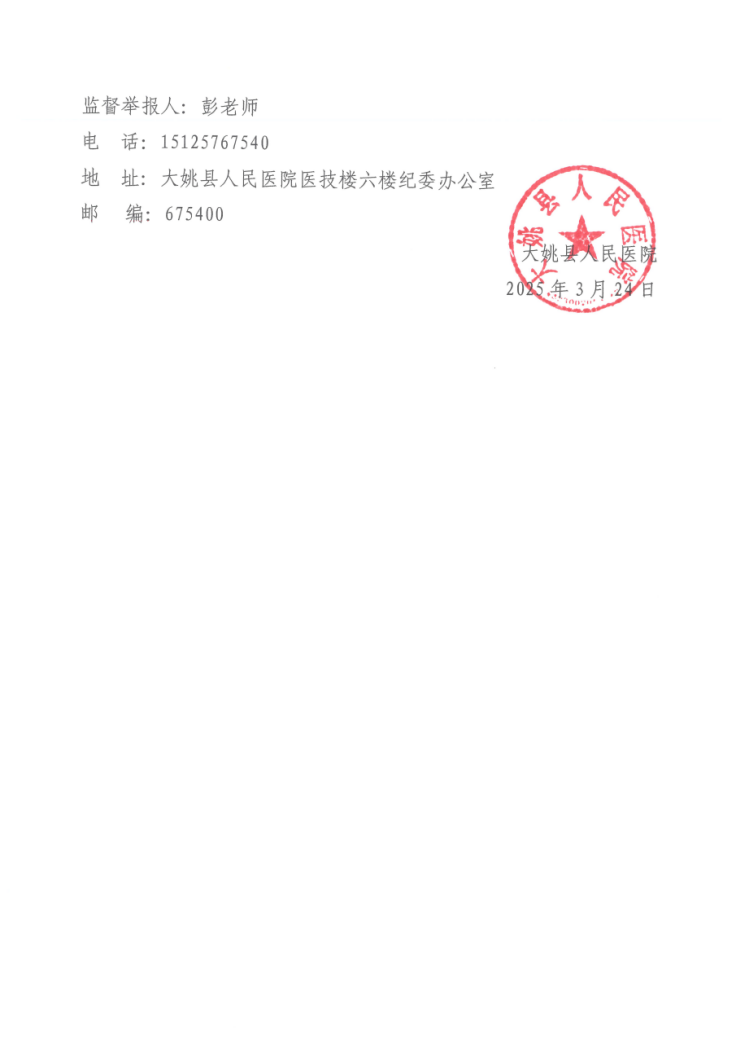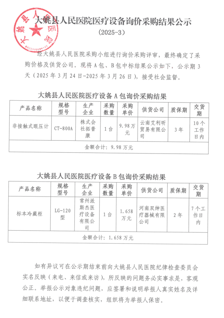 | 下一条:大姚县人民医院关于智慧胸痛中心与平台服务单一来源采购征求意见公示 |