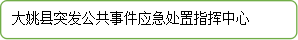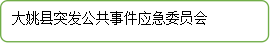 成立大姚县突发公共事件应急委员会(以下简称“县应急委”),作为我县常设的协调指挥机构,统一领导全县突发公共事件的应急处置工作。县应急委的主要职责是:贯彻执行国家和省州有关应急工作的法律、法规和政策,研究制定全县预防和处置突发公共事件的重大措施和指导意见,统一领导各乡镇、各部门的突发公共事件处理工作,督促检查各项工作措施的落实情况,宣布启动和停止实施突发公共事件总体应急预案,承担州应急领导机构安排的其他应急工作。