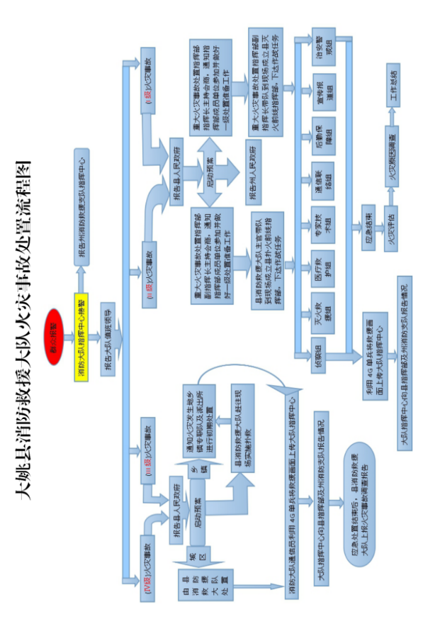 4.1.3  应对较大(Ⅲ级)火灾事故,启动县级火灾事故应急预案,各有关乡镇级火灾事故应急预案必须启动。
