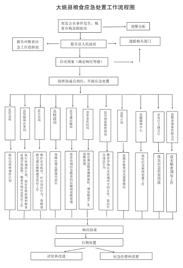 农发行大姚支行:负责落实粮食采购、加工、调运、供应应急所需粮食贷款。