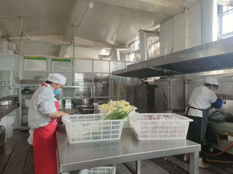 2. 食堂从业人员管理到位,规范穿戴工作衣帽,食品加工制作流程合规;餐饮用具清洗消毒保洁到位;食品原料储存规范、标识清楚。