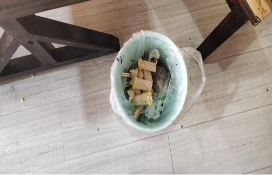2.操作间(后厨)脏、乱、差,物品摆放杂乱,未按规定分类摆放,垃圾桶未配盖,使用后餐饮用具未及时清洗,天花板霉斑严重。