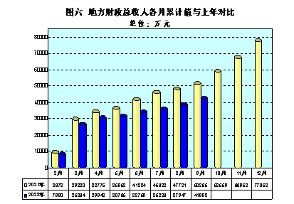 5.地方财政总收入累计实现41998万元,比上年同期下降17.4%。一般公共预算收入累计实现38903万元,比上年同期下降4.8%。一般公共预算支出完成208999万元,比上年同期增长4.94%。