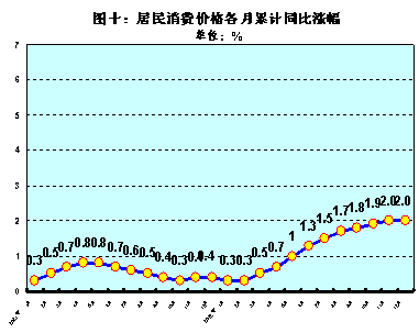4.居民消费价格总水平累计比上年同期上涨2.0%,商品零售价格总水平累计比上年同期上涨3.9%。