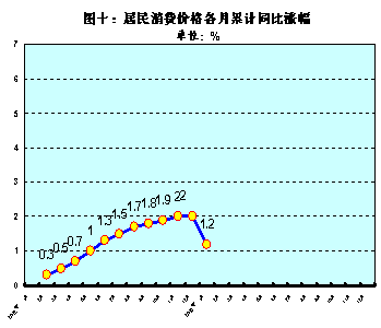 4.居民消费价格总水平累计比上年同期上涨1.2%,商品零售价格总水平累计比上年同期上涨2.5%。