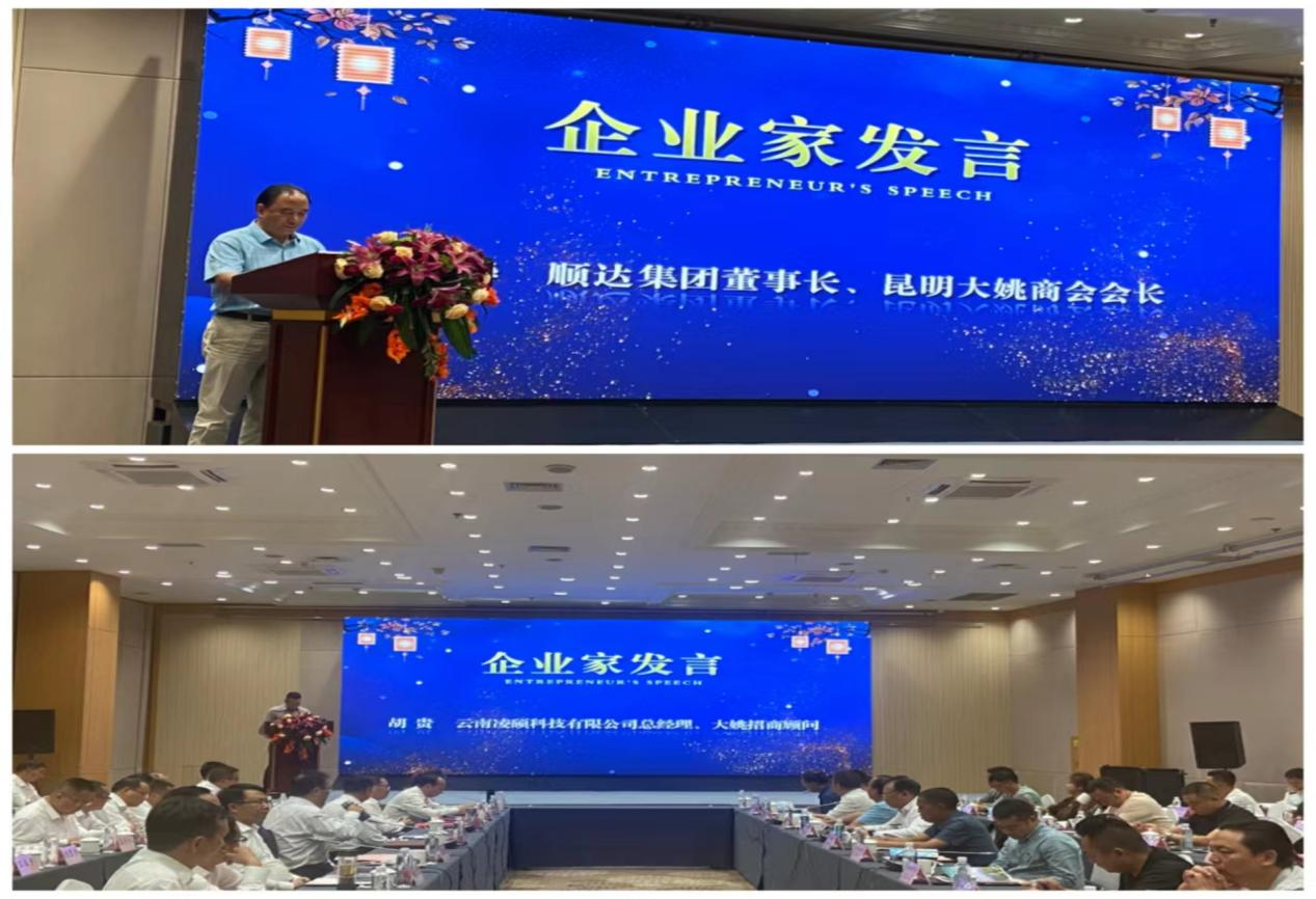 云南顺达企业集团董事长、昆明大姚商会会长钱恩华,云南凌硕科技有限公司总经理、大姚县招商顾问胡贵围绕企业在大姚投资项目情况、前景展望及大姚营商环境作了交流发言。两位企业家对大姚的资源环境、人文环境、投资环境、营商环境等高度赞赏。昆明大姚商会会长钱恩华还表示将发挥商会“视野宽、接触广、信息灵”的优势,加大家乡宣传力度、提供更多招商信息、加强客商引荐、发动回乡创业,积极搭建家乡与外界的合作之桥、友谊之桥。