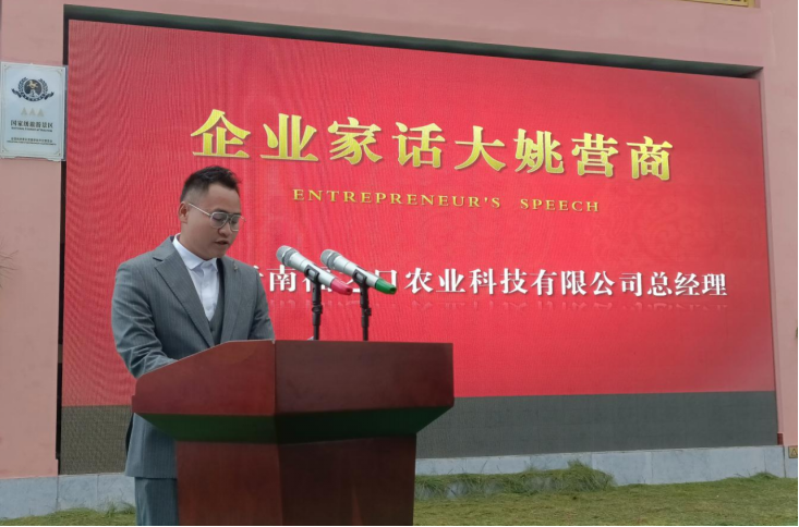 在“企业家话大姚营商”环节,已落户大姚的云南省福之口农业科技有限公司总经理戴坤表达了广大企业家的心声,他深情回顾了大姚县委县政府从企业考察、洽谈、落地到投产,全方位、全周期服务企业的点滴,感慨的说:大姚既承载着千年的重商传统,又承托着浓郁的亲商情结,更呈现出强大的兴商活力,大姚速度让我们感到惊讶也让我们欣喜,“服务好现有企业就是最好的招商”的理念一直在大姚生根发芽,温暖了我们。