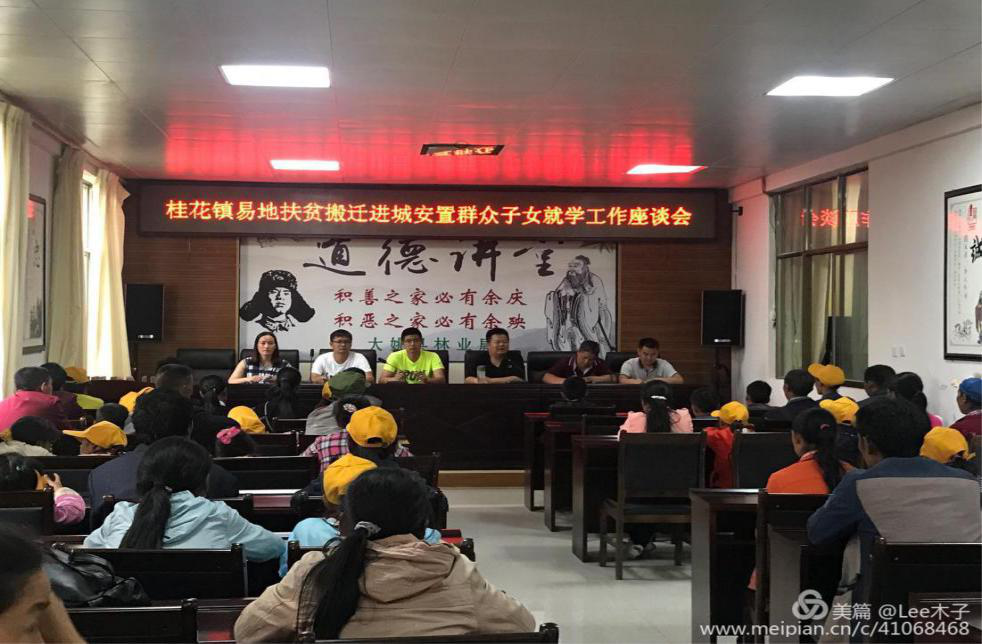 当日,桂花镇党委政府在林业局会议室组织搬迁到县城的群众和学生召开了座谈。会上桂花镇镇长以亲身经历为家长讲解教育的重要性,苦口婆心鼓励大家挪穷根,尽快适应城市新生活;县林业局职工李富专以“富不读书,富不长远;穷不读书,穷不断根”作发言;家长代表、城里务工代表、学生代表先后做了发言。