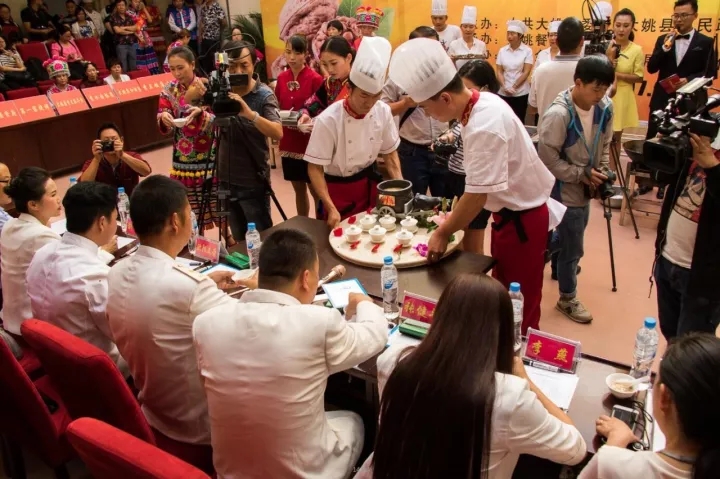 经过前期的初赛进入决赛的大姚金都酒楼、大姚滇香火瓢牛肉、大姚彝和酒店、大姚土垚彝馆、大姚新雅楼饭店、吉鑫鱼庄、秀水园饭店、田园家乡菜、秀兰饭店、金五角酒店、大姚唐老鸭酒楼、和味居食府、大姚水乡园酒楼、第一家烧烤,14支参赛队伍现场进行比赛。